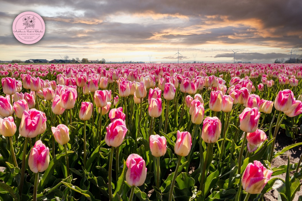 For International Women's Day, tulips are an excellent choice. They express warmth, comfort, and care that can be used in many kinds of relationships. Many people are attracted to tulips because of their beautiful, sleek appearance, especially women. White tulips represent forgiveness and respect, yellow gives optimism and sunny thoughts, pink tulips share kindness and joy, and red tulips speak about love.